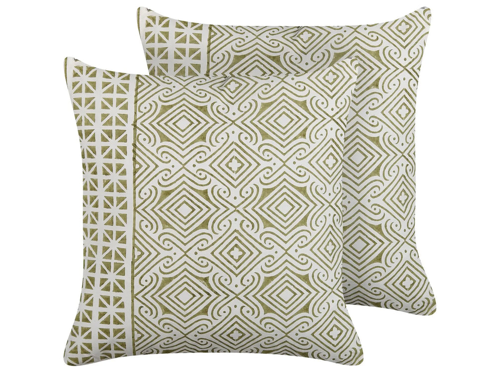 Set of 2 Scatter Cushions Green and White 45 x 45 cm Hand Block Print Removable Covers Zipper Oriental Pattern Beliani