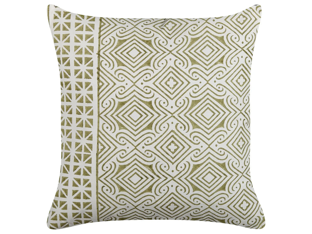 Set of 2 Scatter Cushions Green and White 45 x 45 cm Hand Block Print Removable Covers Zipper Oriental Pattern Beliani