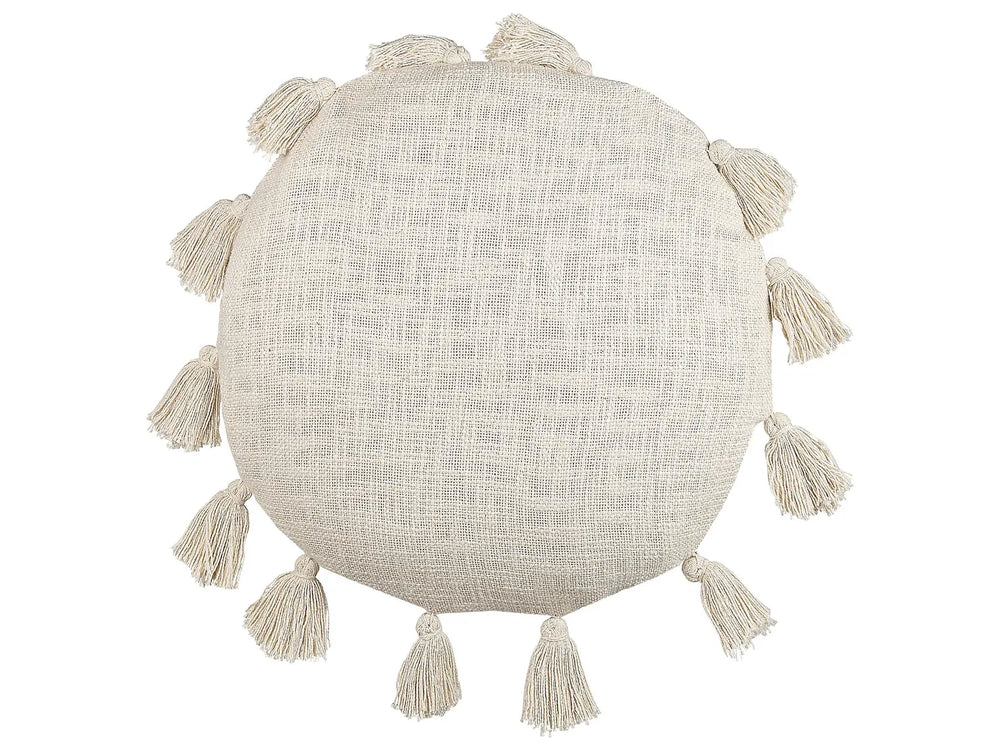 Decorative Cushion Beige Cotton 45 cm Round with Tassels Modern Boho Decor Accessories Beliani