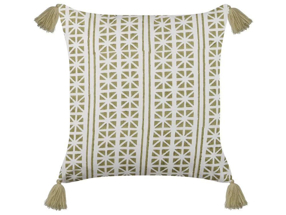 Scatter Cushion Green and White 45 x 45 cm Hand Block Print Removable Covers Zipper Boho Pattern Beliani
