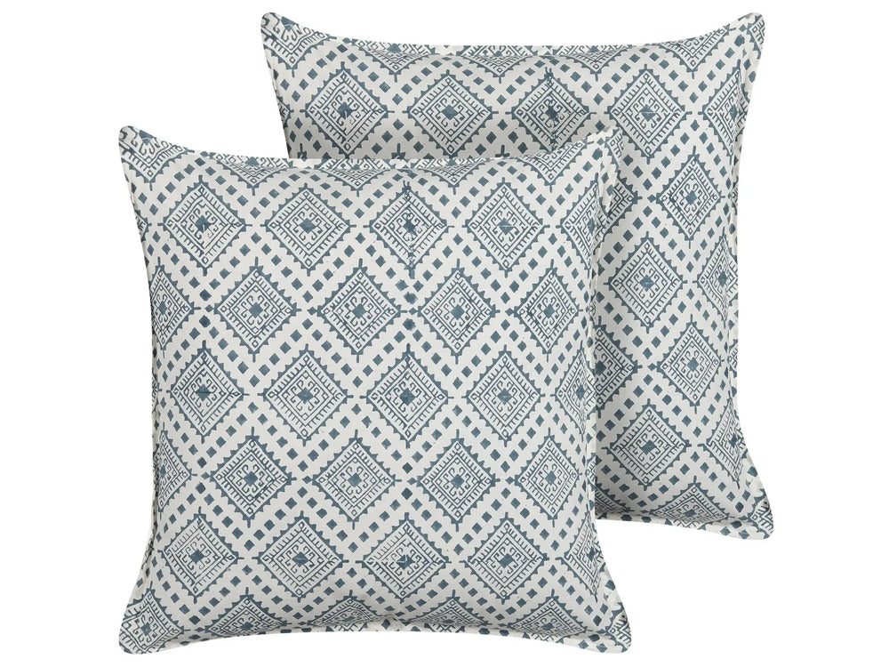 Cotton Cushions Blue and White 45 x 45 cm Hand Block Print Removable Covers Zipper Oriental Pattern Beliani is backordered and will ship as soon as it is back in stock.