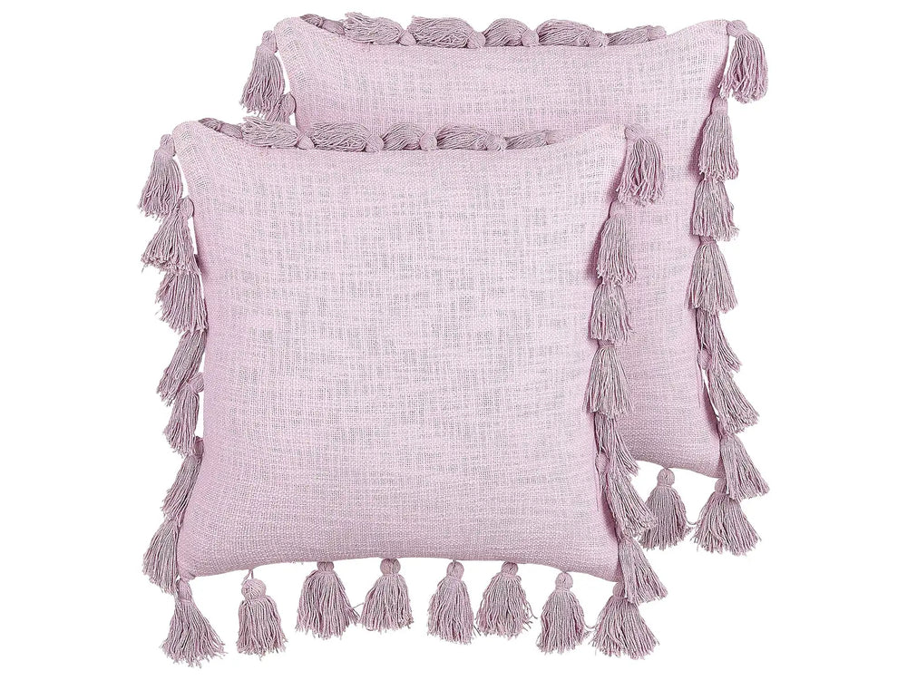 Set of 2 Decorative Cushions Pink Cotton 45 x 45 cm with Tassels Modern Boho Decor Accessories Beliani