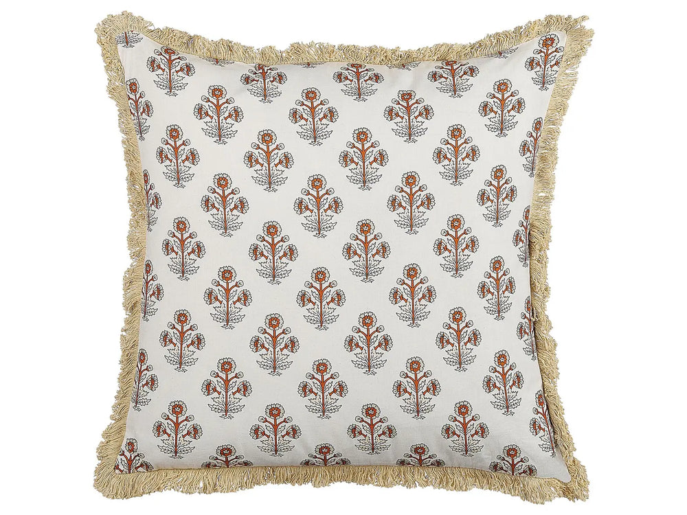 Scatter Cushion Cotton Flower Pattern 45 x 45 cm Decorative Tassels Removable Cover Decor Accessories Beliani