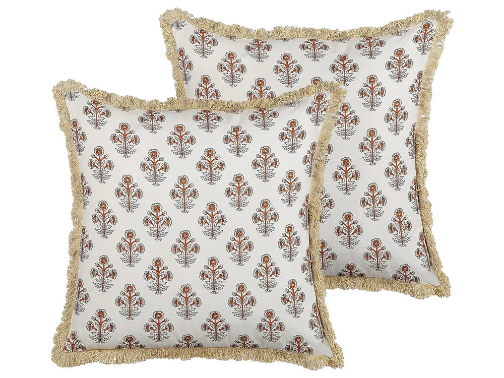 Set of 2 Scatter Cushions Cotton Flower Pattern 45 x 45 cm Decorative Tassels Removable Cover Decor Accessories Beliani is backordered and will ship as soon as it is back in stock.