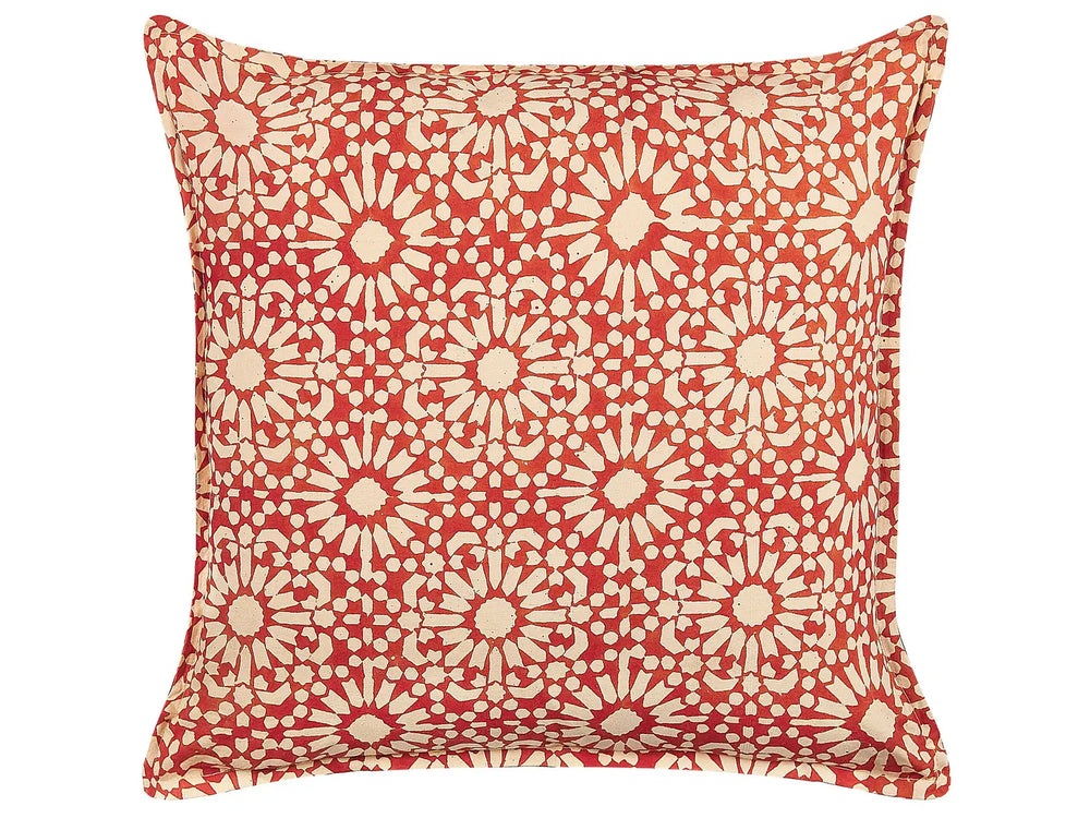 Decorative Cushion Red Cream Cotton Geometric Pattern 45 x 45 cm Folk Design Decor Accessories Beliani is backordered and will ship as soon as it is back in stock.