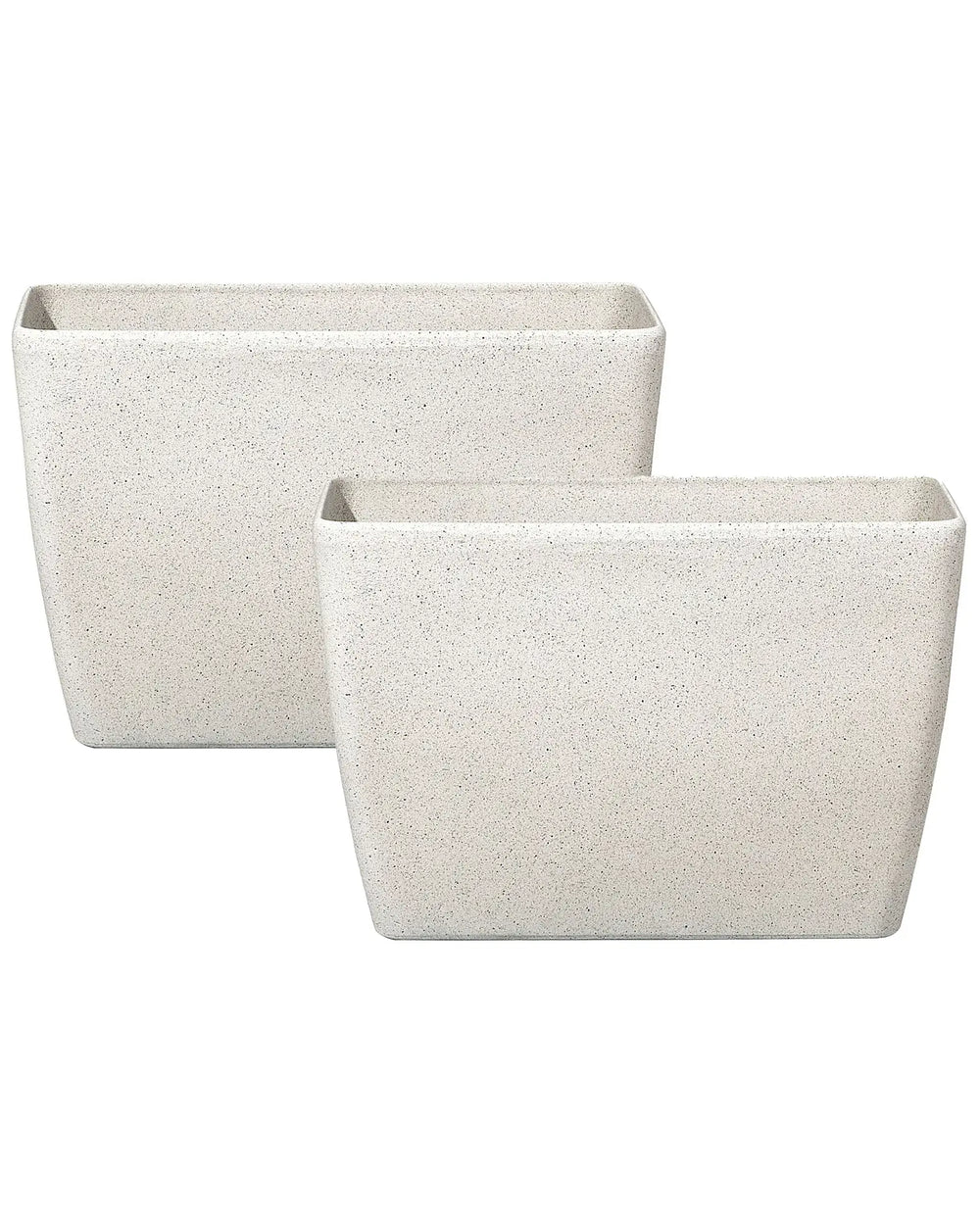 Set of 2 beige stone plant pots 60 x 27 x 41 cm modern and minimal accessories for outdoor decoration garden Beliani