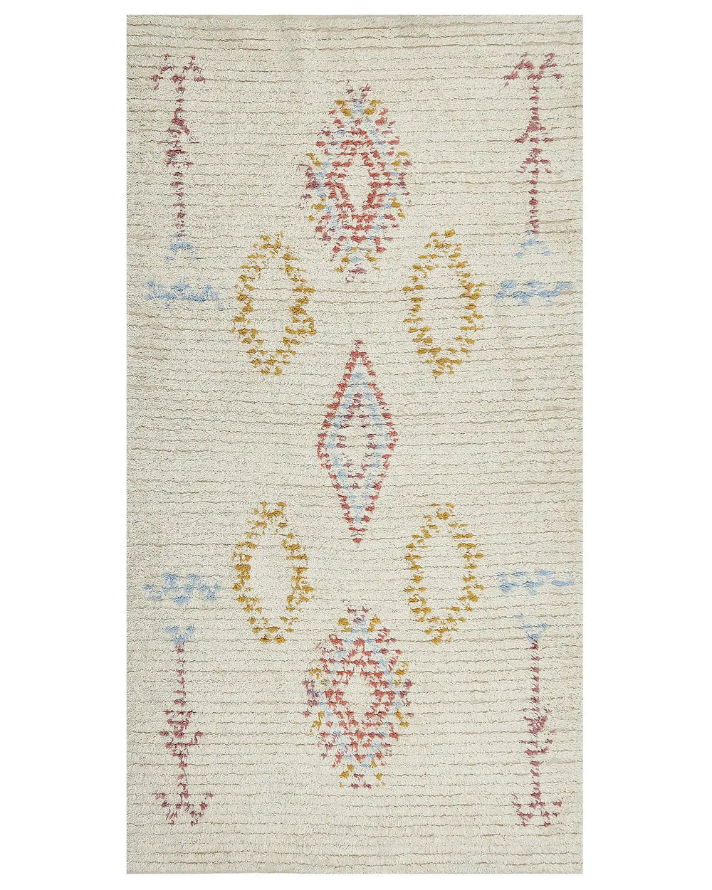 Rug Beige Cotton 80 x 150 cm Geometric Pattern Hand Tufted Flatweave Living Room Bedroom Beliani
