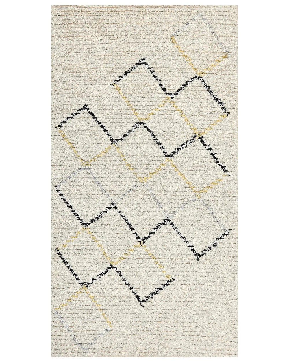 Area Rug Beige Cotton 80 x 150 cm Minimalistic Hand Tufted Design Geometric Pattern Living Room Bedroom Beliani