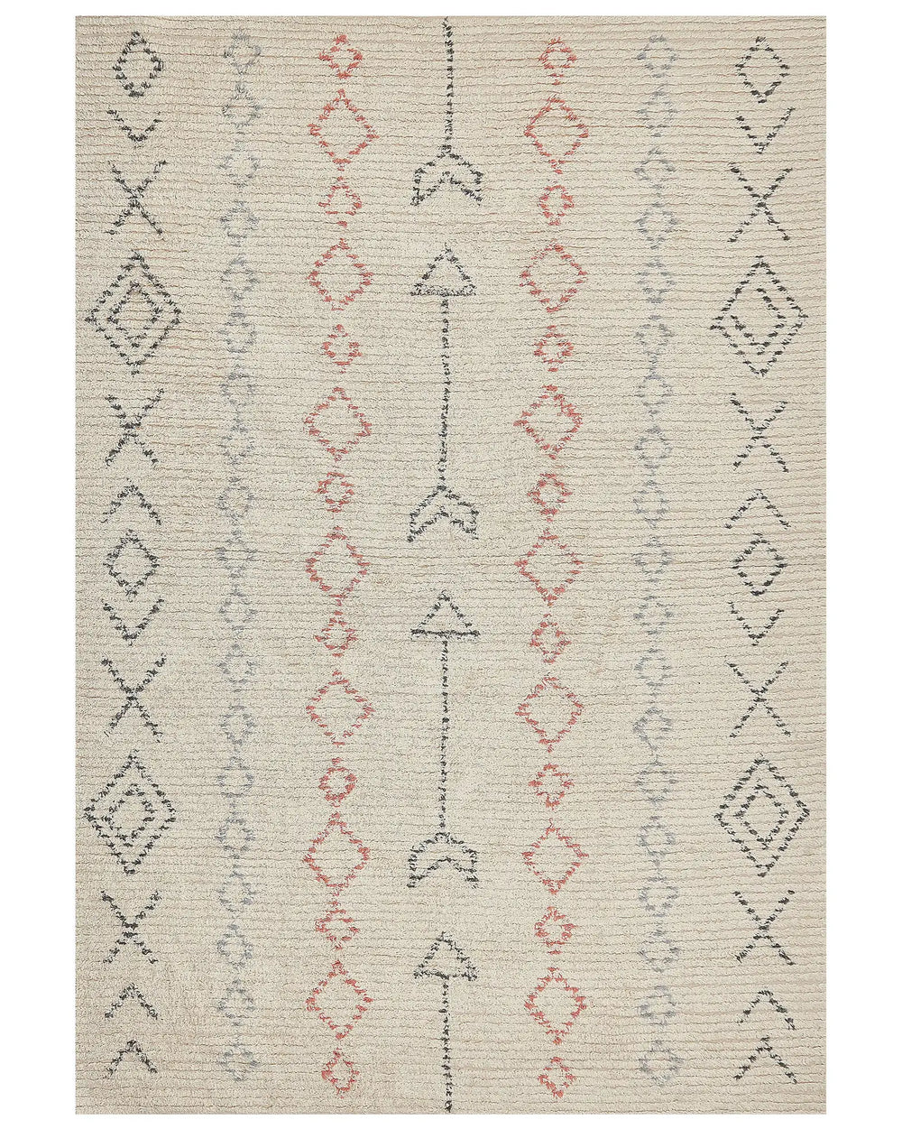 Area Rug Beige Cotton 160 x 230 cm Minimalistic Hand Tufted Design Geometric Pattern Living Room Bedroom Beliani