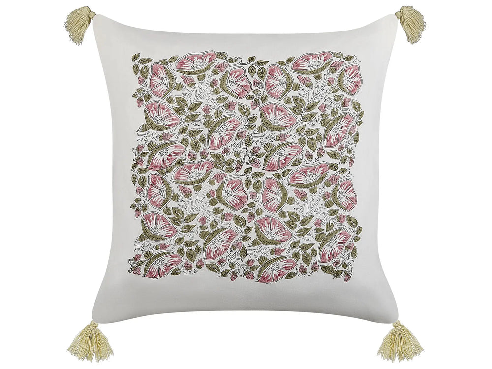Scatter Cushion Multicolour Cotton 45 x 45 cm Floral Pattern Tassels Handmade Removable Cover with Filling Boho Style Beliani