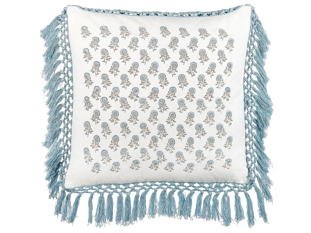 Scatter Cushion White and Blue Cotton 45 x 45 cm Floral Pattern Fringed Handmade Removable Cover with Filling Boho Style Beliani is backordered and will ship as soon as it is back in stock.