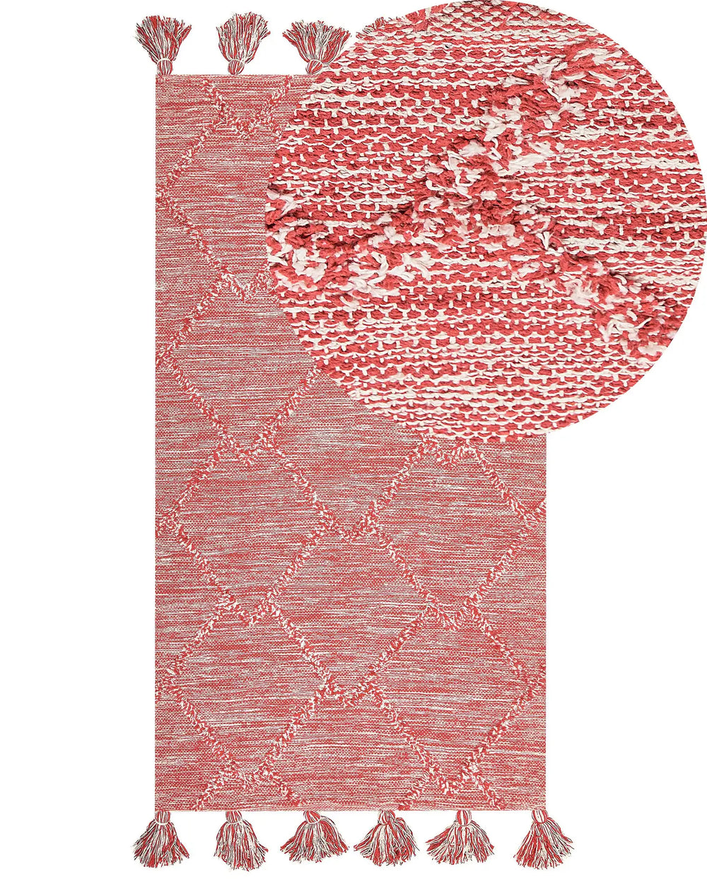 Area Rug Red Cotton 80 x 150 cm Rectangular Thick Weave Living Room Bedroom Decor Beliani