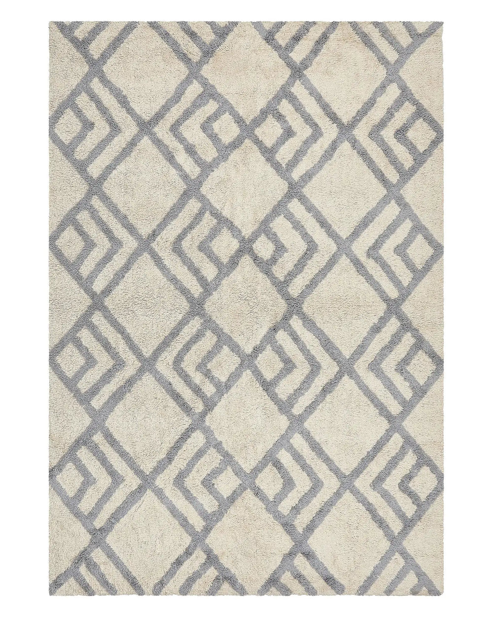Area Rug Beige and Rug Cotton 140 x 200 cm Rectangular Hand Tufted Living Room Bedroom Decor Beliani