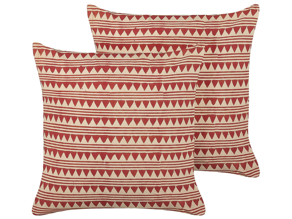 Set of 2 Scatter Cushions Red and Beige Cotton 45 x 45 cm Geometric Pattern Handmade Removable Cover with Filling Boho Style Beliani