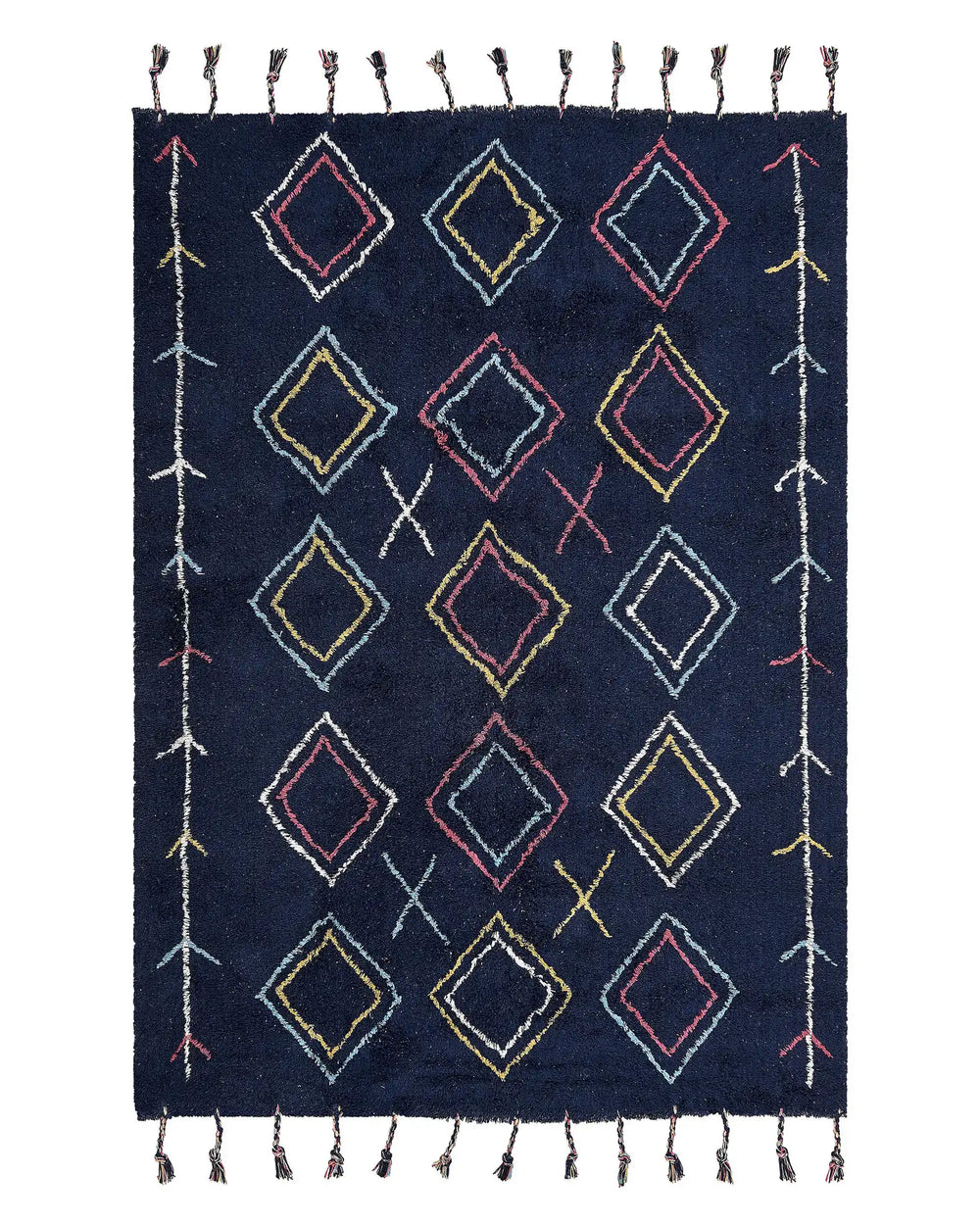 Area Rug Black Cotton 140 x 200 cm Rectangular Hand Tufted Beliani