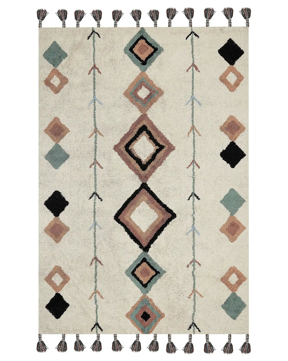 Area Rug Orange Cotton 140 x 200 cm Rectangular with Tassels Diamond Pattern Boho Oriental Style Beliani is backordered and will ship as soon as it is back in stock.