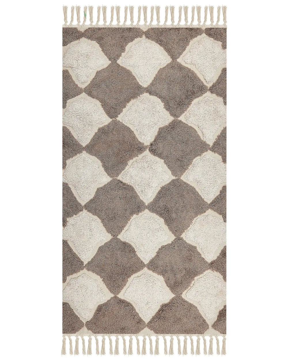 Area Rug Brown and Beige Cotton 80 x 150 cm Rectangular with Tassels Geometric Pattern Boho Oriental Style Beliani