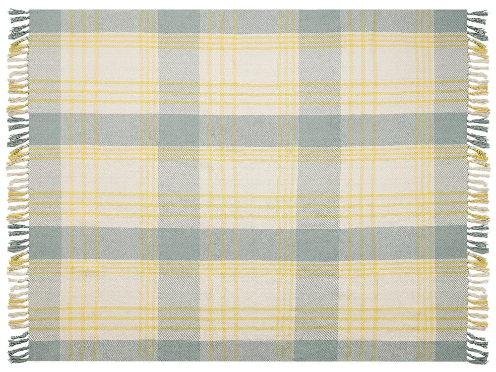 Check Blanket Green and Yellow Cotton 125 x 150 cm Bed Throw Traditional Living Room Bedroom Beliani