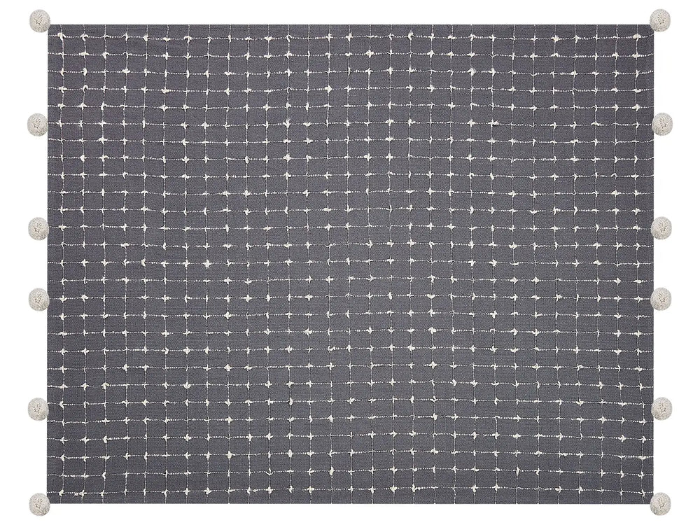 Blanket Grey Cotton 125 x 150 cm Decorative Throw with Pom Poms Checked Cover Home Accessory Beliani