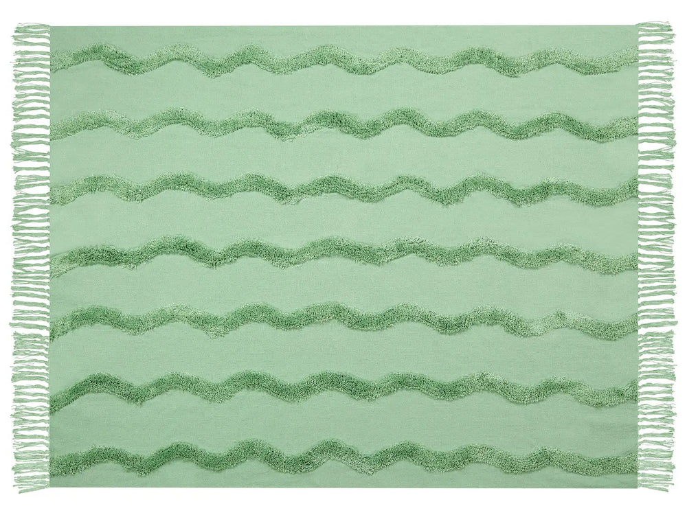 Blanket Green Cotton 125 x 150 cm Geometric Pattern Knitted Throw Boho Style Living Room Bedroom Accent Piece Beliani is backordered and will ship as soon as it is back in stock.