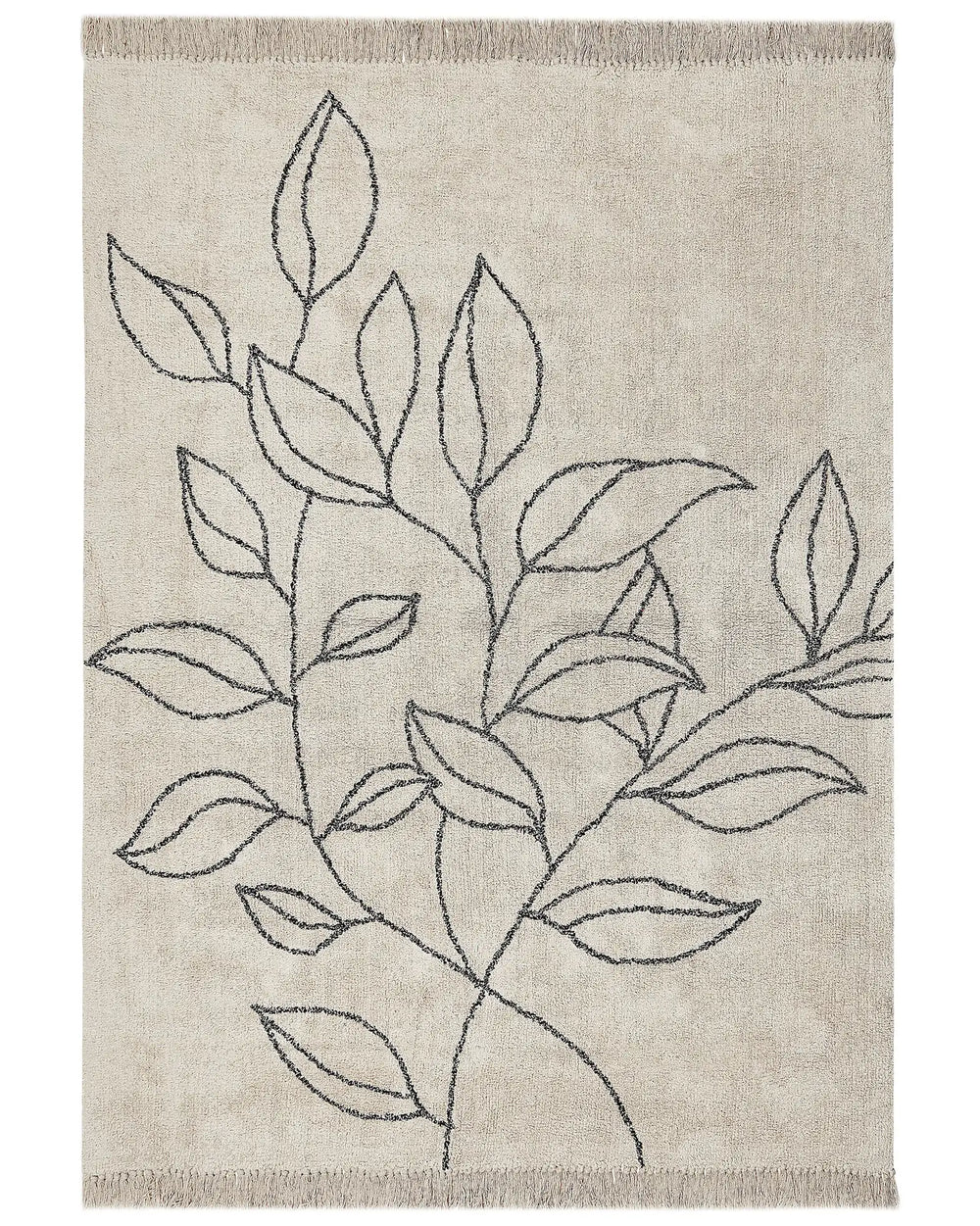 Area Rug Beige and Black Cotton 160 x 230 cm Minimalistic Tufted FloralPattern Fringed Living Room Bedroom Beliani