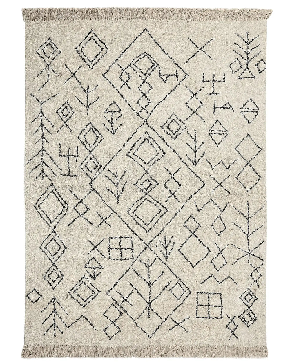 Area Rug Beige Cotton 160 x 230 cm Rectangular with Tassels Geometric Pattern Boho Oriental Style Beliani