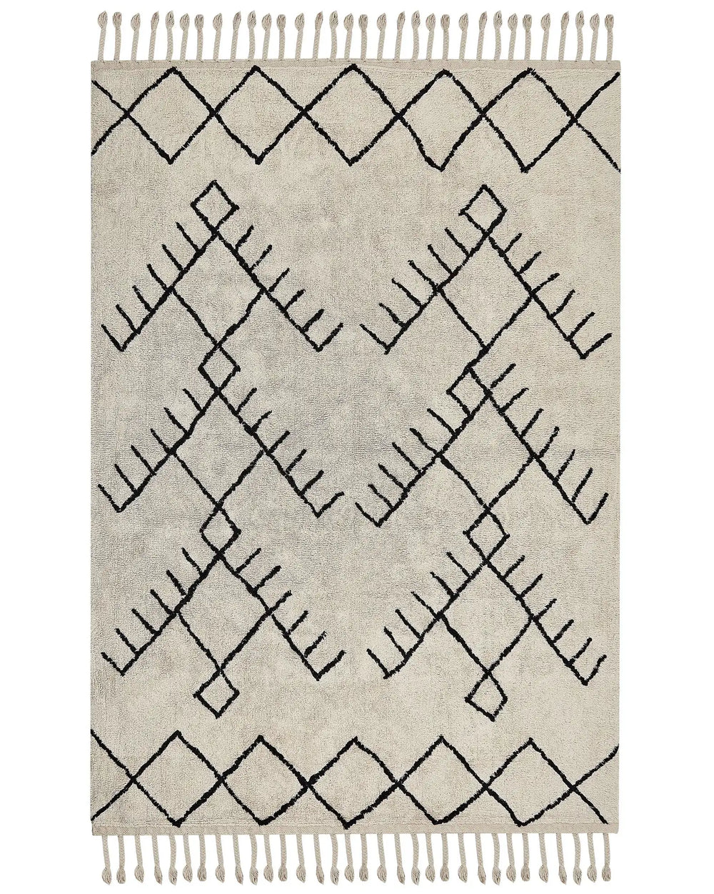 Area Rug Beige and Black Cotton 160 x 230 cm Rectangular with Tassels Geometric Pattern Boho Style Beliani