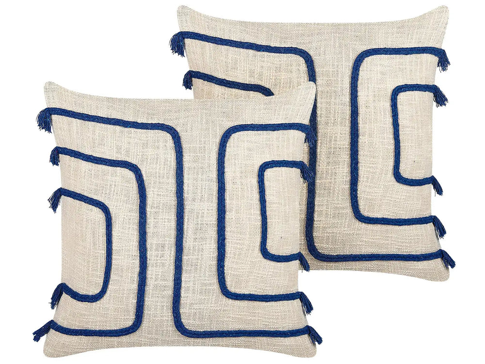Set of 2 Decorative Cushions Beige and Navy Blue 45 x 45 cm Absract Pattern Square Home Accessory Beliani is backordered and will ship as soon as it is back in stock.