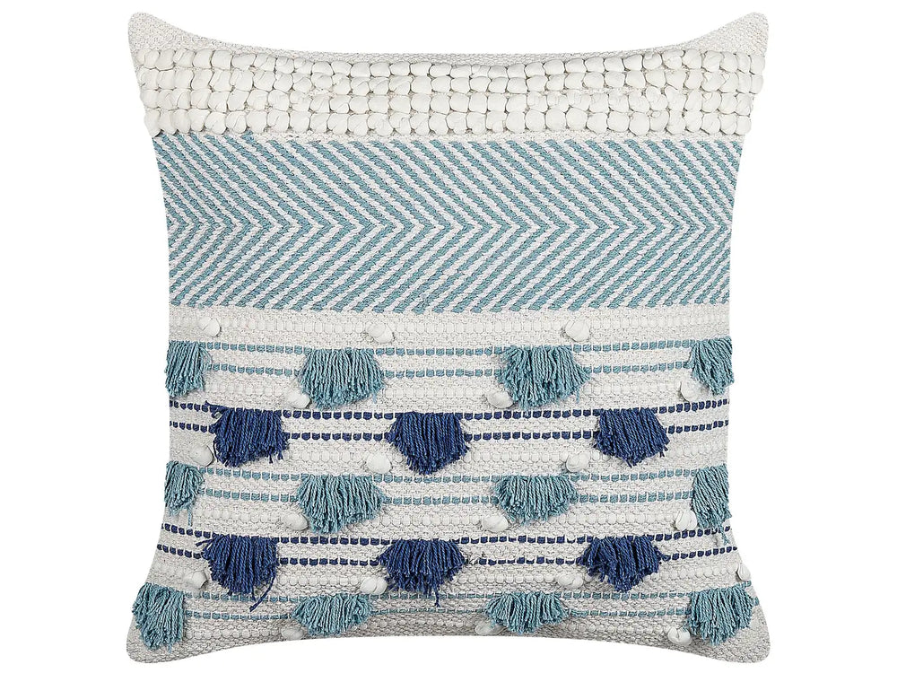 Decorative Cushion White and Blue Cotton 45 x 45 cm with Tassels Boho Decor Accessories Beliani is backordered and will ship as soon as it is back in stock.