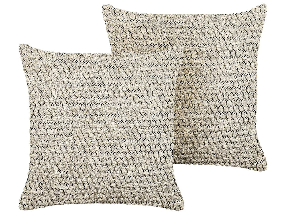 Set of 2 Decorative Cushions Beige Cotton 45 x 45 cm Handmade Boho Decor Accessories Beliani