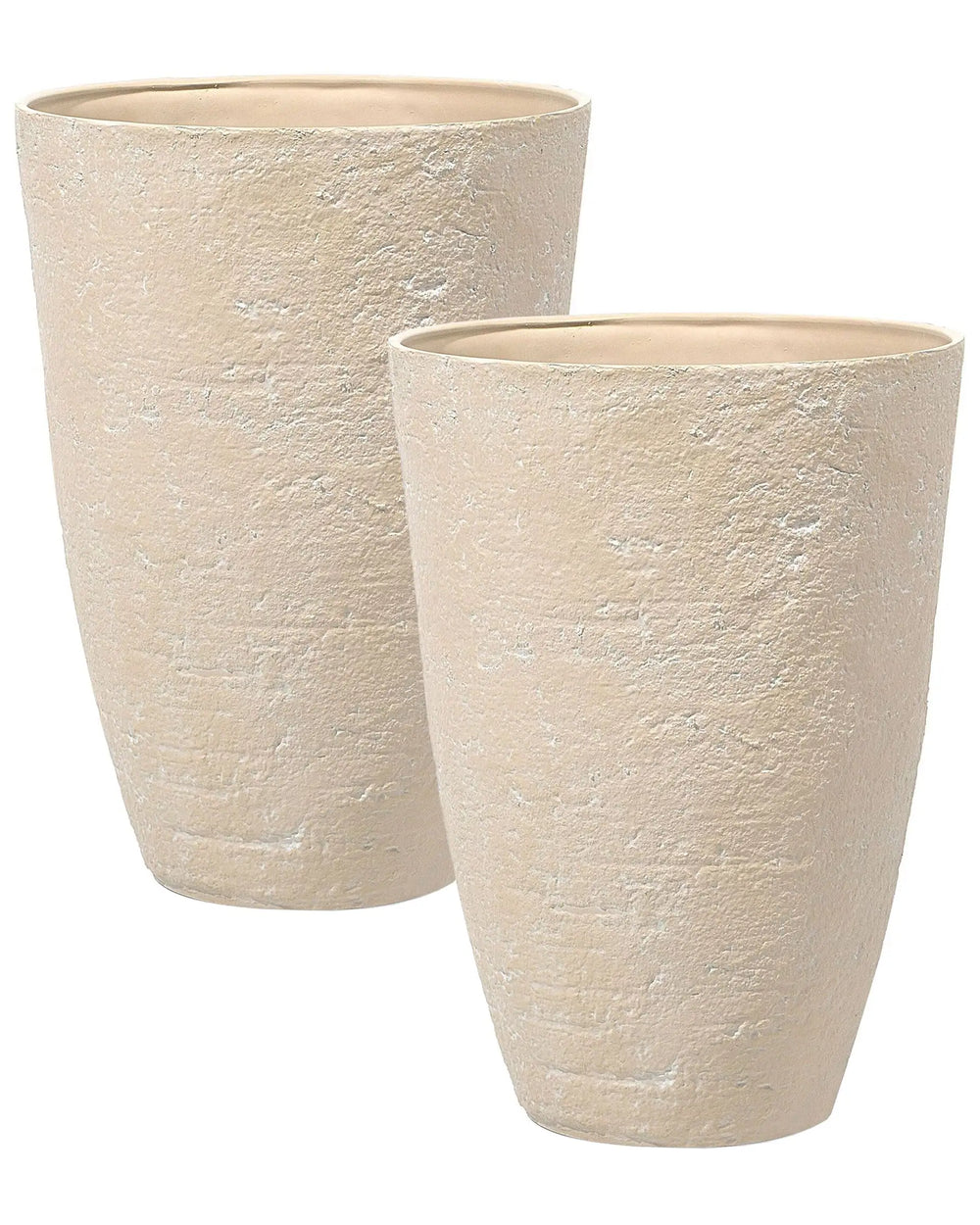 Plant Pots Beige Stone 43 x 43 x 60 cm Indoor Outdoor Beliani