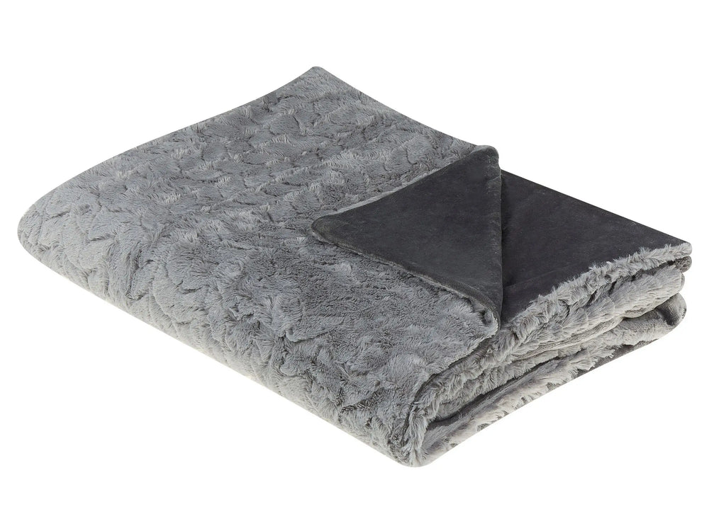 Blanket Grey Polyester 150 x 200 cm Furry Soft Pile Bed Throw Cover Home Accessory Beliani