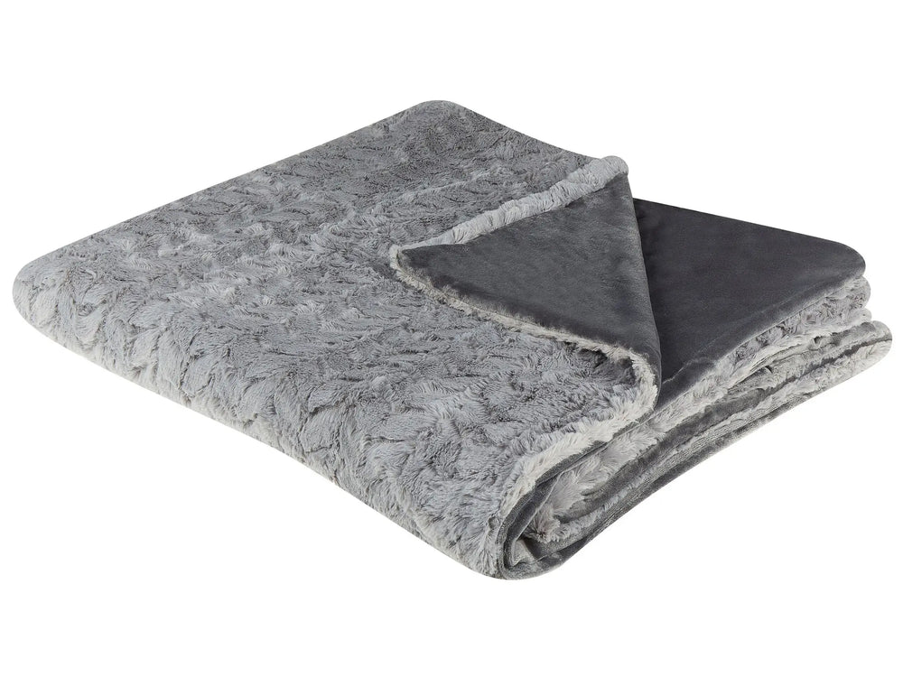Blaket Grey Polyester 200 x 220 cm Furry Soft Pile Bed Throw Cover Home Accessory Beliani