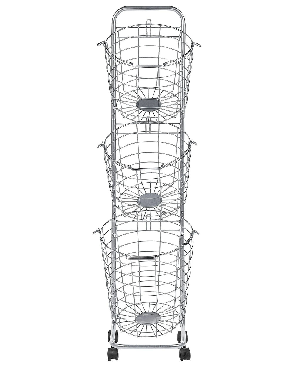 3 Tier Wire Basket Stand Silver Metal with Castors Handles Detachable Kitchen Bathroom Storage Accessory for Towels Newspaper Fruits Vegetables Beliani is backordered and will ship as soon as it is back in stock.