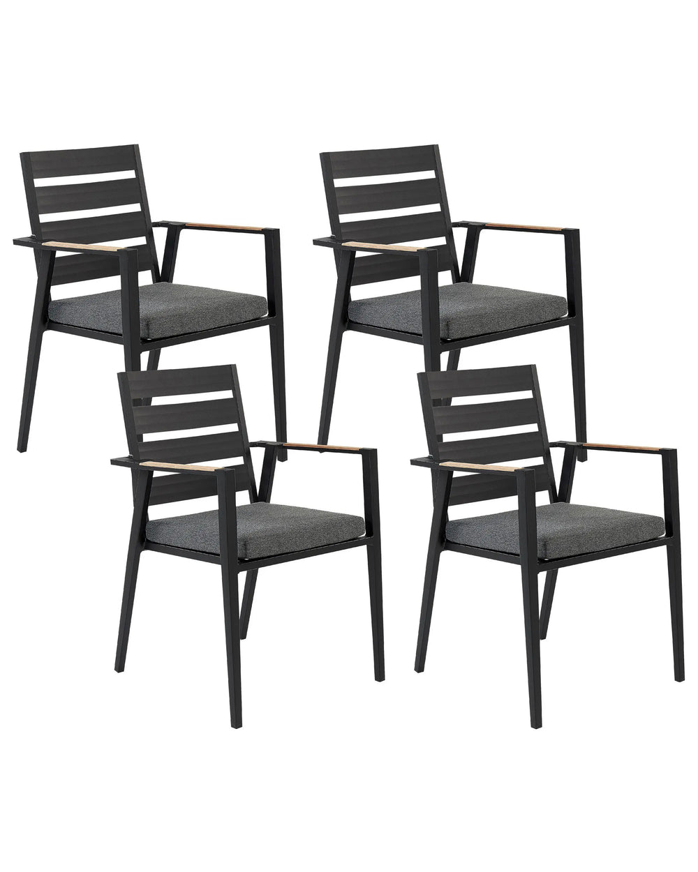 Set of 4 Garden Dining Chairs Black Aluminium Frame with Cushions Slatted Backrest Design Modern Beliani