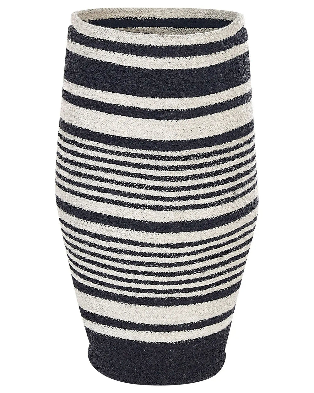 Storage Basket Cotton White and Black Braided Laundry Hamper Fabric Bin Beliani