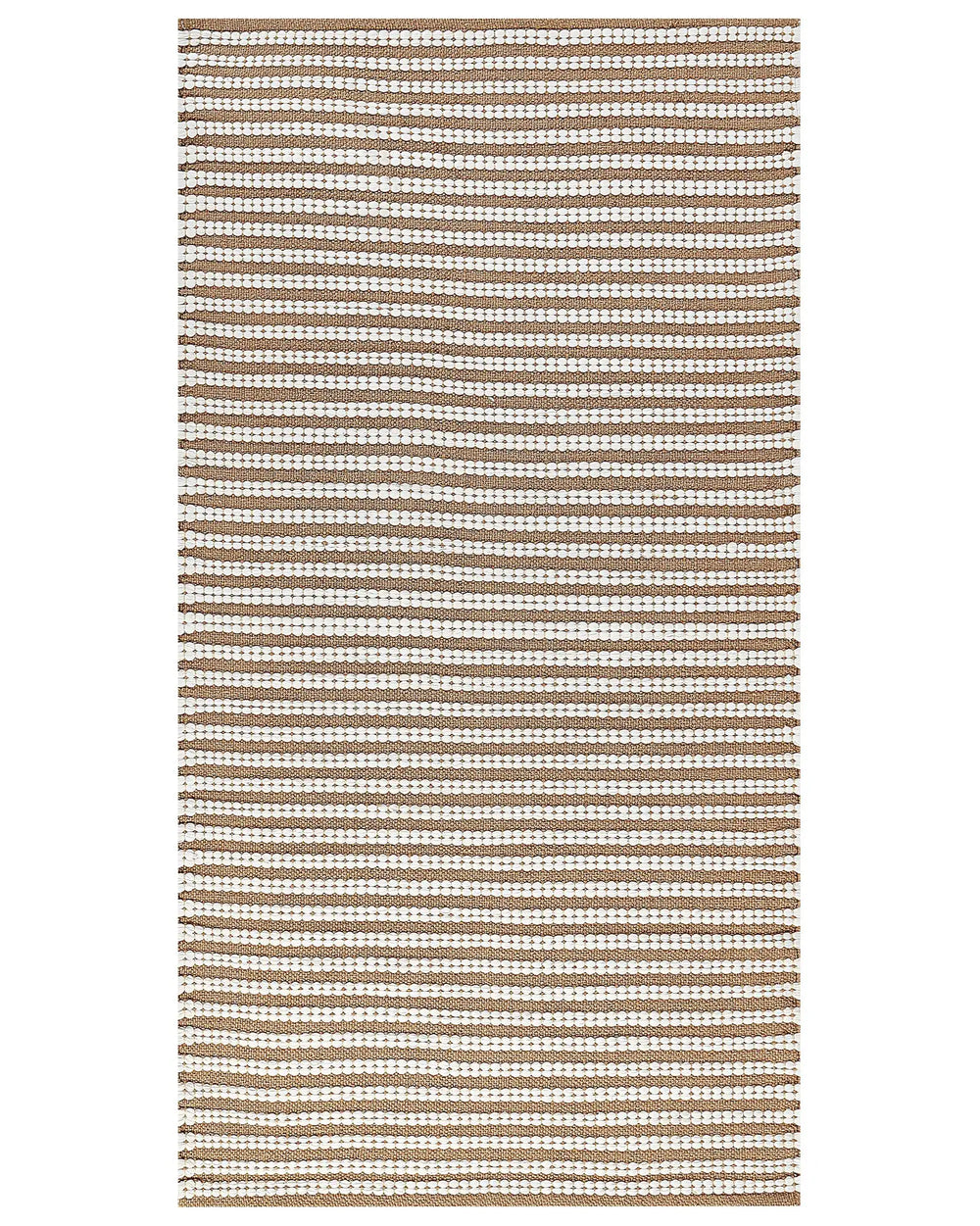 Area Rug White and Brown Cotton 80 x 150 cm Rectangular Hand Woven Modern Design Beliani