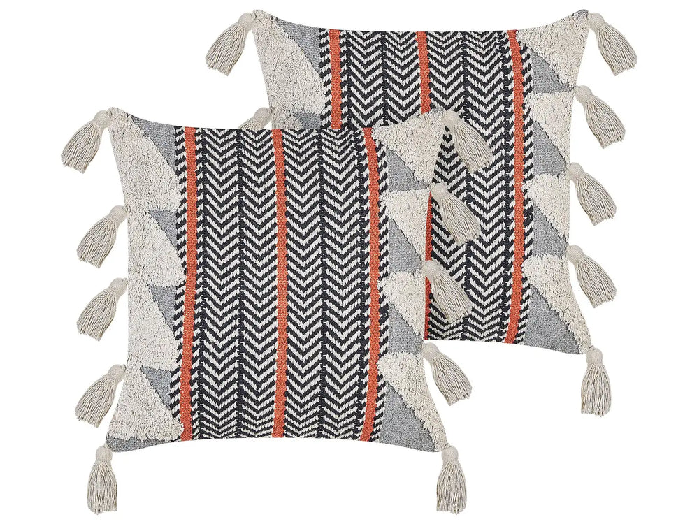 Set of 2 Decorative Cushions Multicolour Cotton 45 x 45 cm with Tassels Boho Chevron Pattern Beliani is backordered and will ship as soon as it is back in stock.