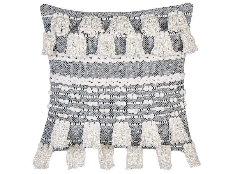 Decorative Cushion White and Grey Cotton 45 x 45 cm With Tassels Boho Retro Decor Accessories Beliani is backordered and will ship as soon as it is back in stock.