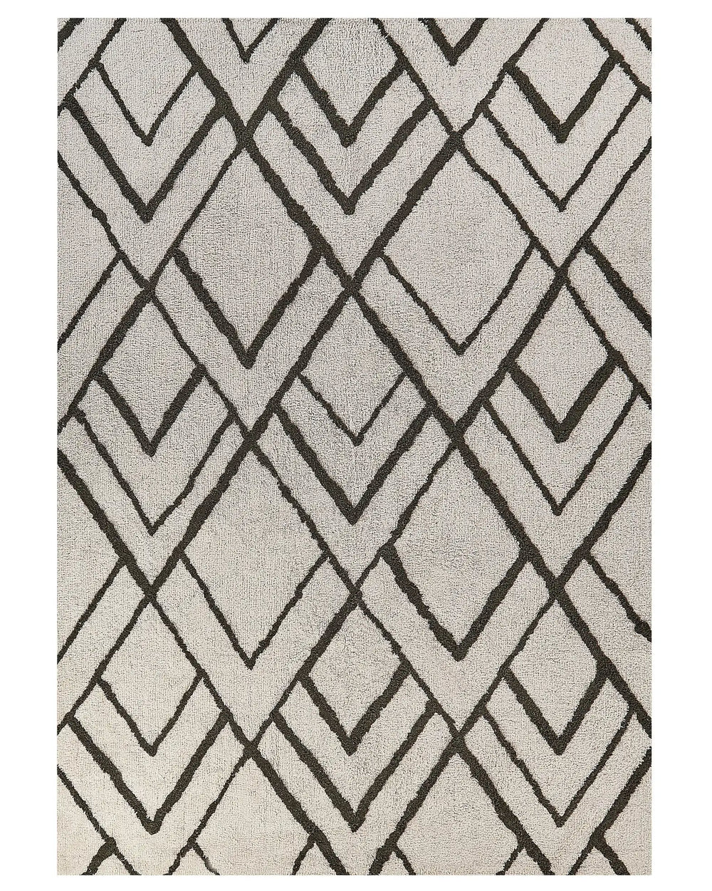 Area Rug White and Green Cotton 160 x 230 cm Geometric Pattern Rectangular Hand Woven Modern Design Beliani is backordered and will ship as soon as it is back in stock.