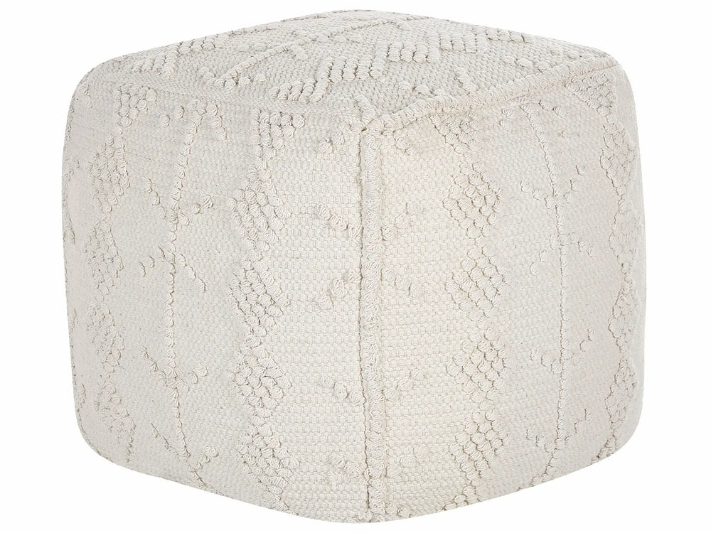 Pouffe White Cotton 40 x 40 cm Geometric Knitted Pattern Decorative Seat Boho Style Living Room Bedroom Beliani is backordered and will ship as soon as it is back in stock.