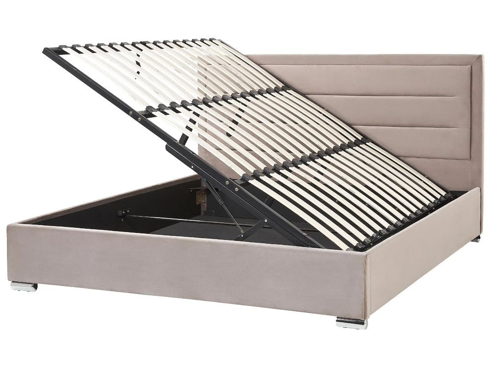 Storage Bed Taupe Velvet Upholstery EU Super King Size 6ft Modern Design Padded Headboard Ottoman Lift Beliani