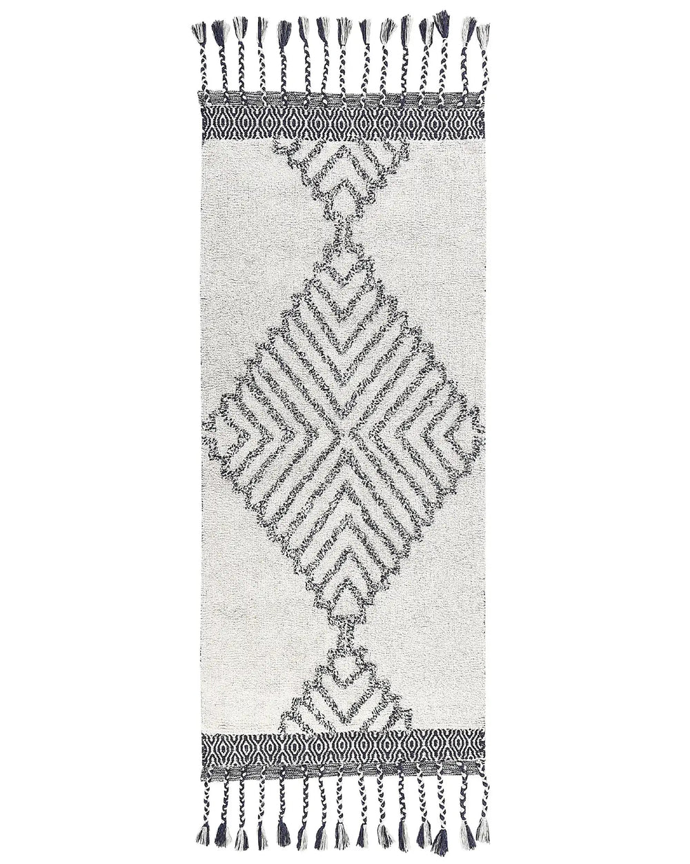Area Rug White and Black Cotton 80 x 150 cm Rectangular with Tassels Geometric Pattern Handwoven Modern Boho Style Living Room Bedroom Beliani
