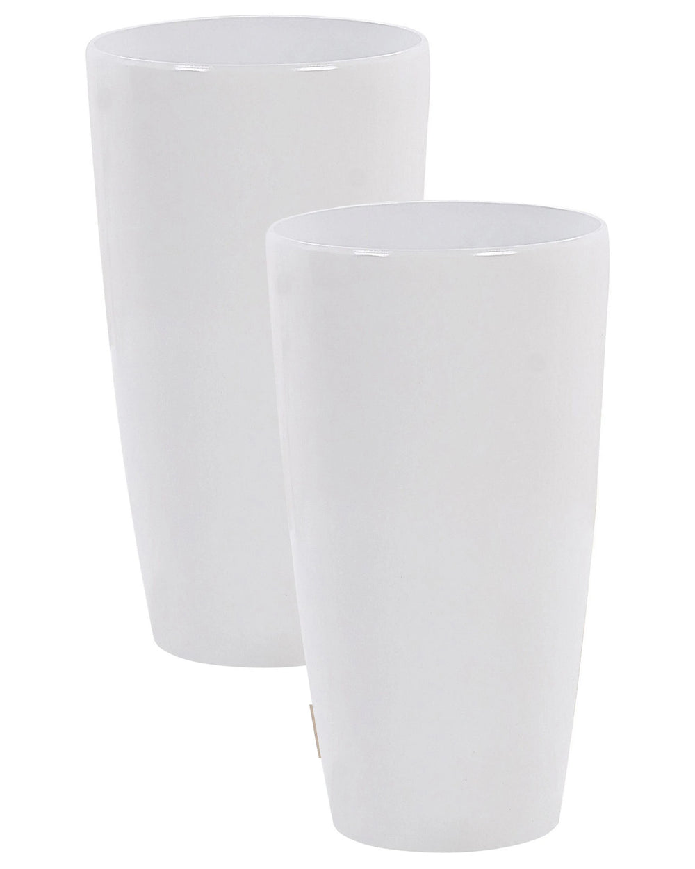 Indoor Outdoor Set of 2 Plant Flower Pots White Stone Mixture High Gloss Round Tall 32 cm Modern Design Beliani