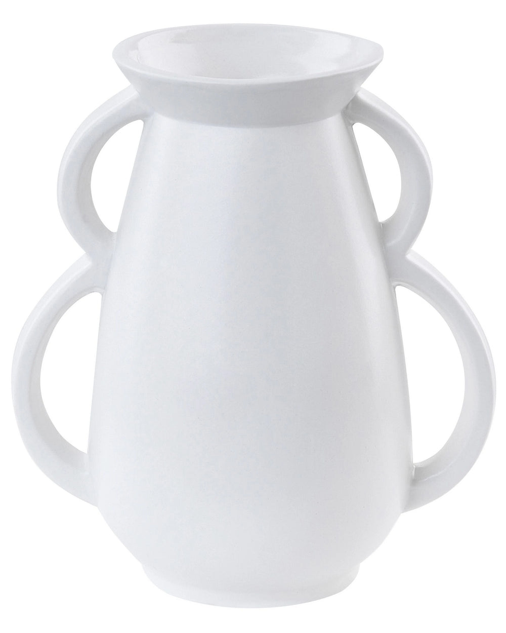 Decorative Table Vase White Porcelain 19 cm with Handles Living Room Modern Deocr Beliani