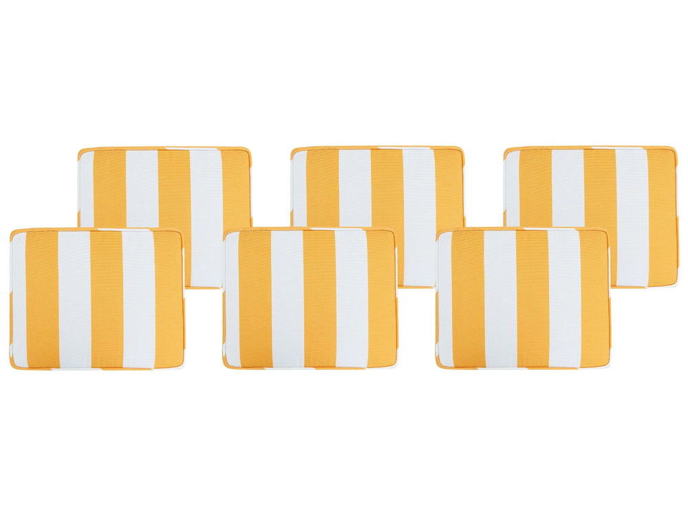 Set of 6 Outdoor Seat Pad Cushions Yellow and White Geometric Striped Pattern String Tied Zip Fastener UV Resistant Beliani is backordered and will ship as soon as it is back in stock.