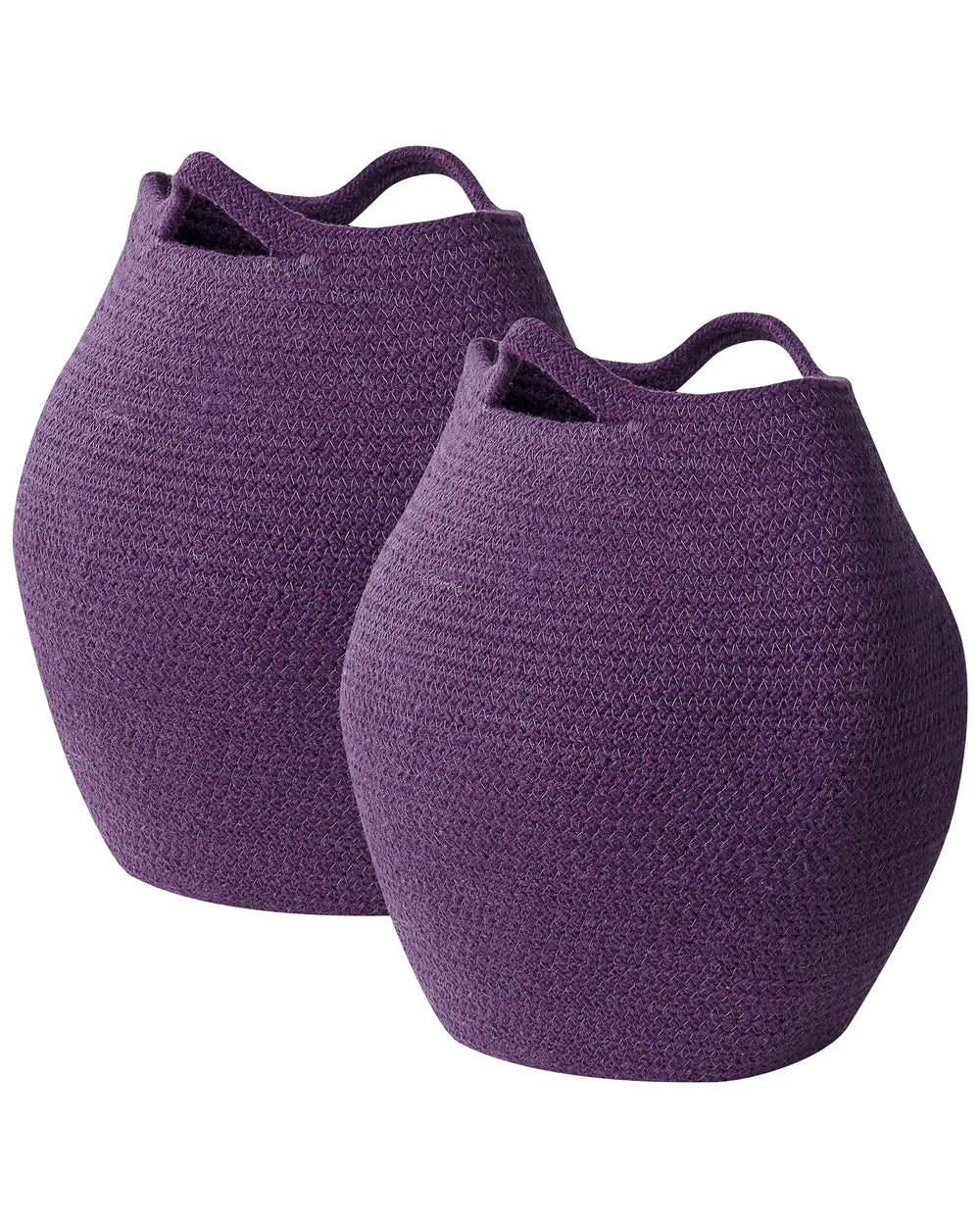 Set of 2 Storage Baskets Purple Cotton 20 x 30 cm Laundry Bins Handwoven Containers Beliani