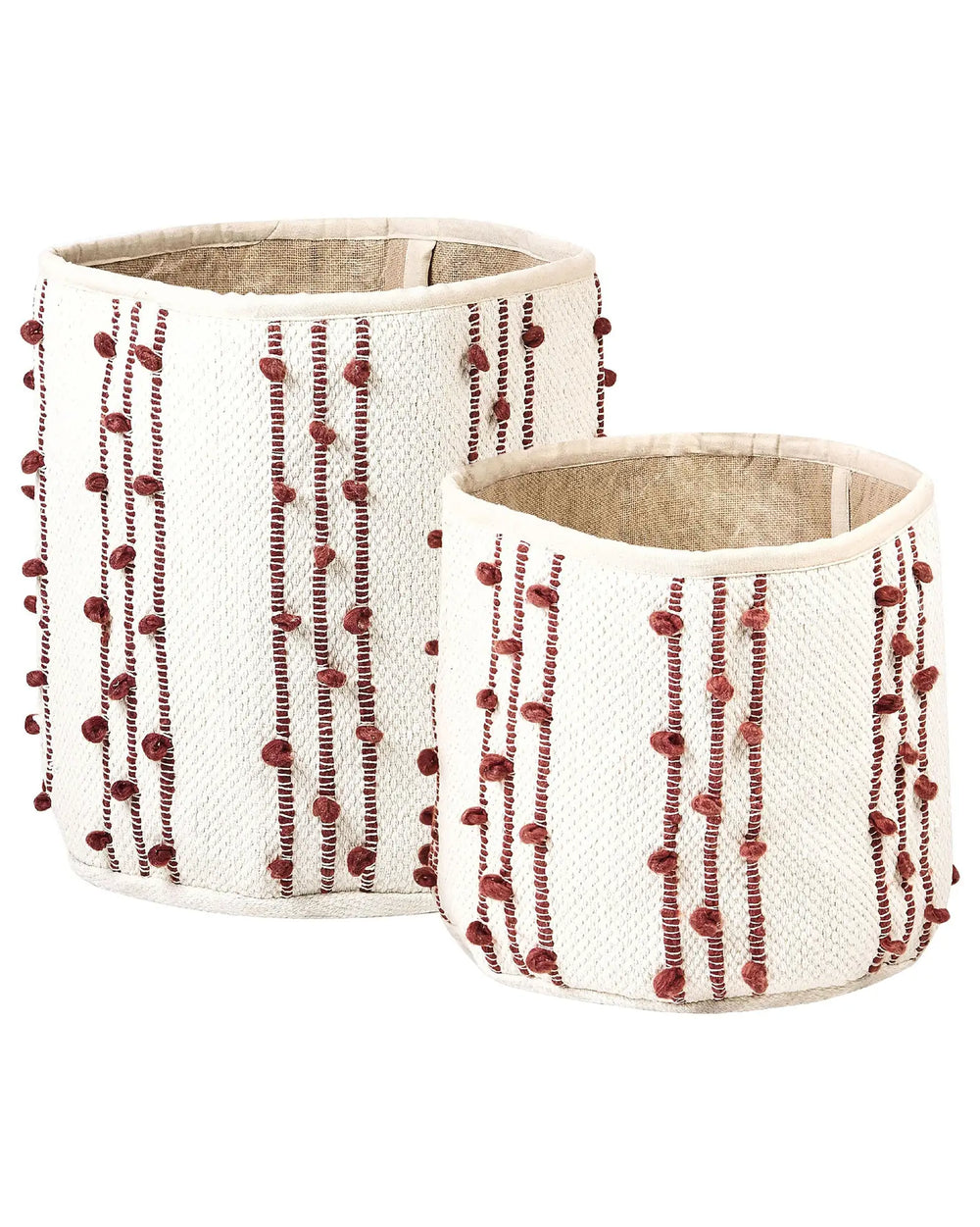 Set of 2 Storage Boxes Beige and Red Cotton 40/45 cm Height Laundry Baskets Bin Accessory Decoration Boho Beliani
