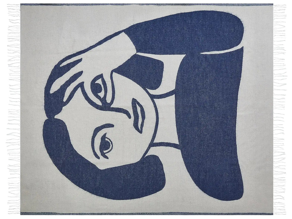 Blanket Beige and Blue Polyester and Acrylic Blend 130 x 170 cm Decorative Throw Woman Female Motif Beliani