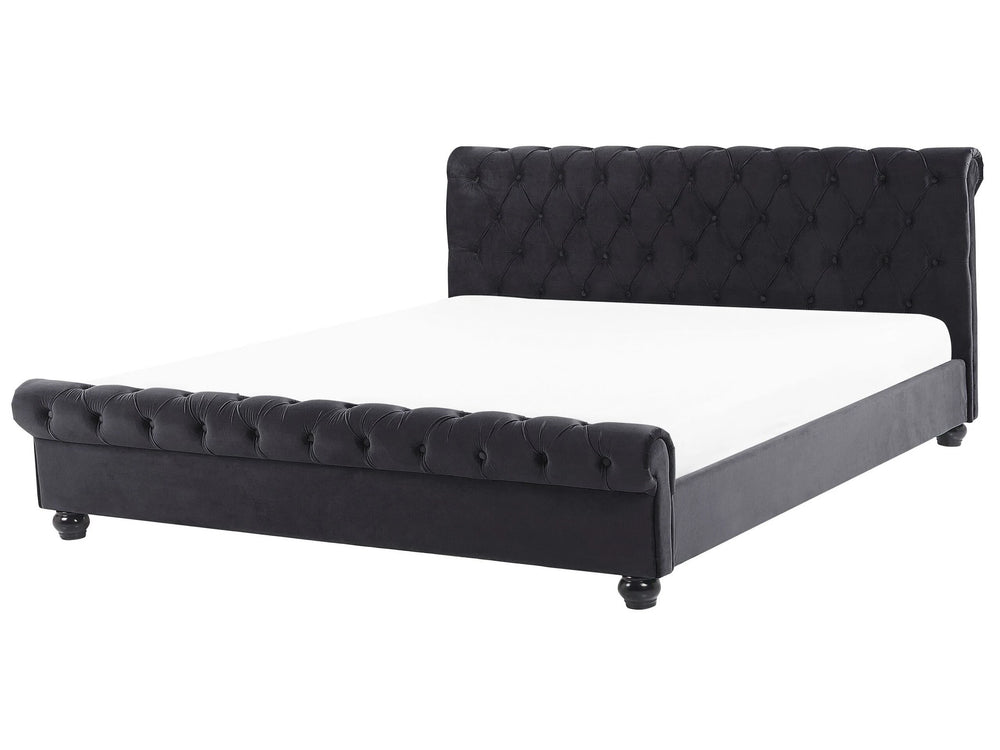Waterbed Black Velvet Upholstery Black Wooden Legs EU Double Size 4ft6 Buttoned Glam Beliani